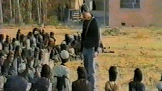 The clip begins with General Abdul Ramatullah of the Northern Alliance explaining what happened to the Taliban members captured at Kunduz in November of 2001.