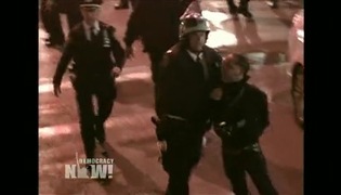 AMY GOODMAN: Nearly two months into Occupy Wall Street, New York City police have carried out a major crackdown on the protesters’ Lower Manhattan encampment, dismantling tents, confiscating belongings, arresting more than 70 people. At around 1:00 in the morning local time, police officers in riot gear encircled Zuccotti Park, renamed by the protesters Liberty Square, ordering them to leave. Although most demonstrators complied, a group of around 200 or 300 people refused, locking their arms together in the middle of the park. They were eventually detained after a tense standoff that saw police use pepper spray and hit protesters with batons.