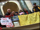 State workers and their supporters have been rallying in unprecedented numbers in Madison over the last few weeks. Tens of thousands of teachers, firemen, police officers, students and families have taken to the streets and to the halls of the State Capitol to demonstrate their opposition to the bill. On Saturday, thousands of people rallied again on the steps of the State Capitol. Among those who took the microphone was Academy Award-winning filmmaker Michael Moore.