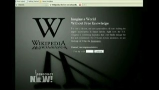 AMY GOODMAN: If you want to know more about two controversial internet anti-piracy bills moving through Congress, you won’t be able to consult Wikipedia on Wednesday. The online encyclopedia and sixth most visited site in the world will join websites like the content aggregator Reddit to “go dark” for 12 to 24 hours in opposition to the Stop Online Piracy, or SOPA, Act and its companion bill, the Protect IP Act. Wikipedia co-founder Jimmy Wales announced the decision to bring down his website last night on Twitter, writing, quote, “Student warning! Do your homework early. Wikipedia protesting bad law on Wednesday!”