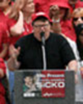 La campaña de Michael Moore para reformar la industria de los servicios médicos del país ha comenzado oficialmente. El martes, el cineasta ganador del premio Óscar acompañó a 1.000 intergrantes de la Asociación de Enfermeras de California (California Nurses Association) en su marcha frente a la Casa de Gobierno del Estado de California, en la que pedíanque se garantice el servicio médico a todas las personas del país. Moore también testificó en una reunión informativa no oficial celebrada en el interior de la Casa de Gobierno estatal. La organización de estos eventos coincide con el pronto lanzamiento de “Sicko”, el nuevo documental de Moore sobre el sistema de salud de la nación.