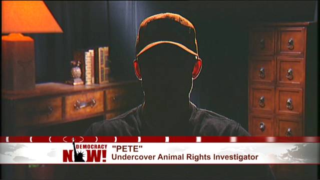 Un investigador de los derechos de los animales describe cómo dedicó más de una década a filmar en secreto el maltrato a los animales y por qué ese trabajo está ahora en peligro ante una ola de leyes que atraviesan el país. Con la condición de que no diéramos a conocer su identidad, hablamos con “Pete”, quien rescató animales que eran maltratados en granjas y mataderos, donde se presentaba a pedir trabajo. “Pete” entregó tomas de video a autoridades policiales y grupos de activistas como Mercy for Animals, lo que provocó un reclamo a nivel nacional y la presentación de cargos contra los autores de los malos tratos. Sus investigaciones y tomas de video dieron lugar a por lo menos quince casos penales y fueron usados en varios documentales. Pero ahora el trabajo de “Pete” está en peligro: alrededor de una decena de legislaturas de estados incorporaron proyectos que apuntan contra la gente que da a conocer anónimamente el maltrato a animales de granja. Llamadas leyes “Ag-Gag”, estas leyes mordaza del sector agropecuario prohibirían la filmación secreta a animales de granja y el pedido de empleo en un establecimiento sin dar a conocer filiaciones con grupos a favor de los derechos de los animales. Dichas leyes también exigen que los activistas entreguen los videos tomados en secreto en un plazo de 24 horas, impidiéndoles conservar material y publicar sus hallazgos por su cuenta.