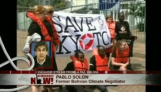 PABLO SOLÓN: The U.S. is not only delaying, the U.S. is doing nothing during this decade. Their pledge on the table is only a 3 percent emission reduction from the levels of 1990. So, it’s almost to do nothing. We are going to lose this decade because the U.S. doesn’t want to go on board. And they are pushing so that everybody accepts a new deal that will mean not a stronger Kyoto Protocol, but a weaker Kyoto Protocol.