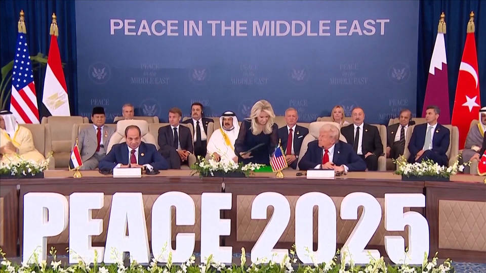 On Monday, President Trump co-chaired a summit in Sharm el-Sheikh with Egyptian President Abdel Fattah el-Sisi. The leaders of over two dozen countries were in attendance for the ceasefire signing ceremony. Israeli Prime Minister Benjamin Netanyahu did not attend. We’ll have more on the Gaza ceasefire deal and the exchange of Israeli and Palestinian captives after headlines.