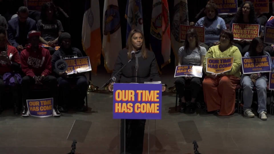New York Attorney General Letitia James spoke publicly for the first time since her federal indictment at a campaign rally for New York City mayoral candidate Zohran Mamdani on Monday. James has been indicted on mortgage fraud charges, which she denies, after President Trump called for his political enemies to be jailed. She’s being prosecuted by Trump’s hand-picked U.S. attorney for the Eastern District of Virginia, Lindsey Halligan, after Trump forced out the previous Trump-appointed U.S. attorney for refusing to bring charges. At the rally, Mamdani and James presented a united front against President Trump, warning about the threat he poses to democracy.