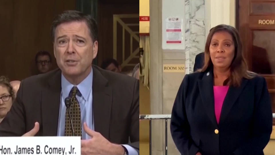 A federal judge has thrown out criminal indictments against former FBI Director James Comey and New York Attorney General Letitia James, after determining the interim U.S. attorney hand-picked by President Trump to bring the cases was not lawfully appointed. Lindsey Halligan, a former insurance attorney with no prosecutorial experience, was named interim U.S. attorney for the Eastern District of Virginia in September after Trump’s previous hand-picked U.S. attorney resigned under pressure from the White House for refusing to bring criminal charges against Trump’s critics. The cases were dismissed “without prejudice,” meaning the Trump administration could try to bring another indictment against Letitia James; meanwhile, the statute of limitations in Comey’s case expired in September.