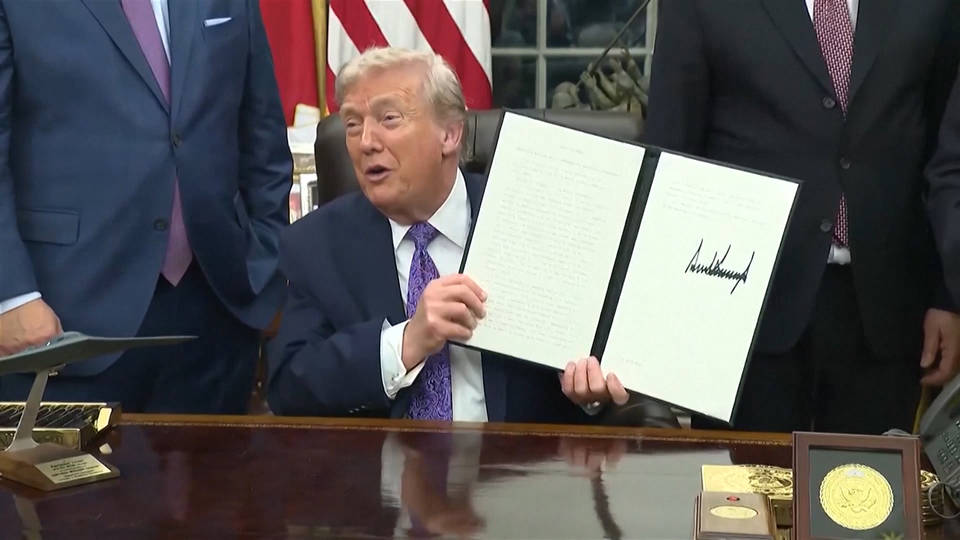 President Trump signed an executive order Thursday establishing a single national standard on artificial intelligence, while blocking states from enacting their own AI regulations. The order directs the Justice Department to set up an “AI Litigation Task Force” to bring lawsuits against states that pass new AI laws. It also directs the Commerce Secretary Howard Lutnick to look into withholding funding for rural broadband internet from states seeking to regulate AI. This comes after a New York Times investigation found Lutnick and his sons run a network of companies in industries ranging from cryptocurrencies to AI data centers, and that Lutnick has promoted policies supporting the construction of data centers while serving in government.