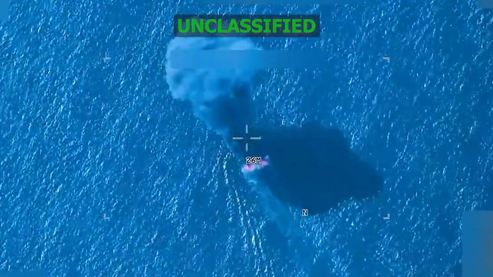 The Pentagon says it has blown up three more boats in the eastern Pacific, killing eight people. Black-and-white video posted to social media Monday by U.S. Southern Command shows three vessels erupting in flames. The Pentagon claimed, without evidence, the boats were carrying drugs in international waters. The latest strikes bring the Pentagon’s announced death toll to 95 since early September. The ACLU and other rights groups have condemned the strikes as “murder” and state-sanctioned killings of civilians who were denied due process. The attacks came as President Trump signed an executive order Monday declaring fentanyl to be a “weapon of mass destruction.”