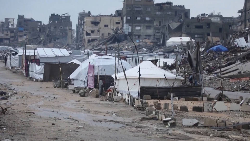 In Gaza, another winter storm has worsened the humanitarian catastrophe faced by tens of thousands of displaced Palestinians who’ve been forced to shelter in tents for a third consecutive winter. Civil Defense crews are struggling to reach people trapped under the rubble of homes that had been damaged by Israeli attacks before this week’s storms caused them to collapse. With no proper housing, many Palestinians have been forced to choose between living in unsafe homes or makeshift tents.
