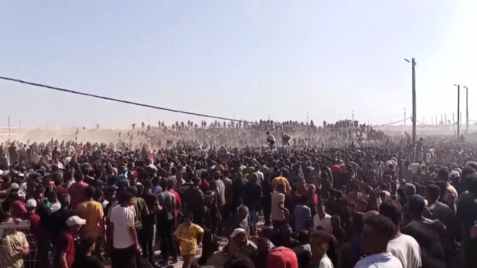 On Tuesday, Israeli soldiers opened fire on hungry and exhausted residents of the southern city of Rafah as they rushed to receive packages of food. Palestinian media reports at least three people were killed and 46 wounded in the chaos. The gunfire rang out after thousands of Palestinians who had spent hours crowded into fenced cages in the hot sun surged toward a distribution point set up by the Gaza Humanitarian Foundation — a controversial aid group backed by Israel with the support of U.S. private military contractors. It was the group’s first day of operations. A United Nations spokesperson on Tuesday called the Gaza Humanitarian Foundation a distraction from what’s needed to prevent a humanitarian catastrophe. This is Juliette Touma of the U.N. Agency for Palestine Refugees.