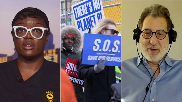 Periodistas, trabajadores y ahora también jueces de todo Estados Unidos están impugnando los recortes presupuestarios implementados desde el recientemente creado Departamento de Eficiencia Gubernamental (DOGE), a cargo de Elon Musk. El ajuste de Musk ha recaído principalmente en los empleos públicos de múltiples organismos del Gobierno federal, con despidos, renuncias forzadas y amenazas de despidos. Entre los millones de estadounidenses afectados por las medidas draconianas del DOGE se encuentra Latisha, empleada del Departamento de Asuntos de los Veteranos, quien sostiene que la reciente exigencia impuesta por Musk que ordena a los empleados del Gobierno federal que envíen por correo electrónico un resumen de sus actividades laborales de la semana previa es “insultante” e “irrespetuosa”, y añade que “el verdadero objetivo es recortar drásticamente la fuerza de trabajo de los organismos públicos federales y allanar el camino para la privatización de los servicios, bienes y programas públicos que todos necesitamos y amamos”. Latisha explica cómo estos recortes afectan particularmente a la población negra y a los veteranos, sectores que tienen una representación desproporcionada en el empleo público. También hablamos con el jefe de redacción del medio ProPublica, Stephen Engelberg, quien recientemente publicó un informe en el que analiza cómo el Gobierno de Trump citó una estadística “claramente incorrecta, que ha sido claramente refutada” sobre la cantidad de empleados del Gobierno federal que trabajan de forma remota. Engelberg señala que dicha estadística se está utilizando para justificar los “poderes de rey” que está reivindicando Trump, así como las contrataciones nepotistas en el DOGE.