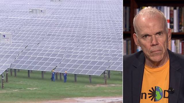 En momentos en que el Gobierno de Trump se vuelve cada vez más hostil al desarrollo de energías renovables, nos acompaña el aclamado ecologista Bill McKibben para hablar sobre su nuevo libro, “Here Comes the Sun”, en el que propone una visión esperanzadora para el futuro, que incluye evitar la catástrofe climática, reconfigurar la economía y salvar la democracia. McKibben sostiene que la clave para desbloquear ese futuro es adoptar plenamente la energía renovable, a pesar de la feroz oposición de la industria de los combustibles fósiles y sus facilitadores políticos. El activista señala que las energías solar y eólica ya se han convertido en las fuentes de energía más baratas y de mayor crecimiento de la historia, y que cada año se están instalando más fuentes de energía verde.